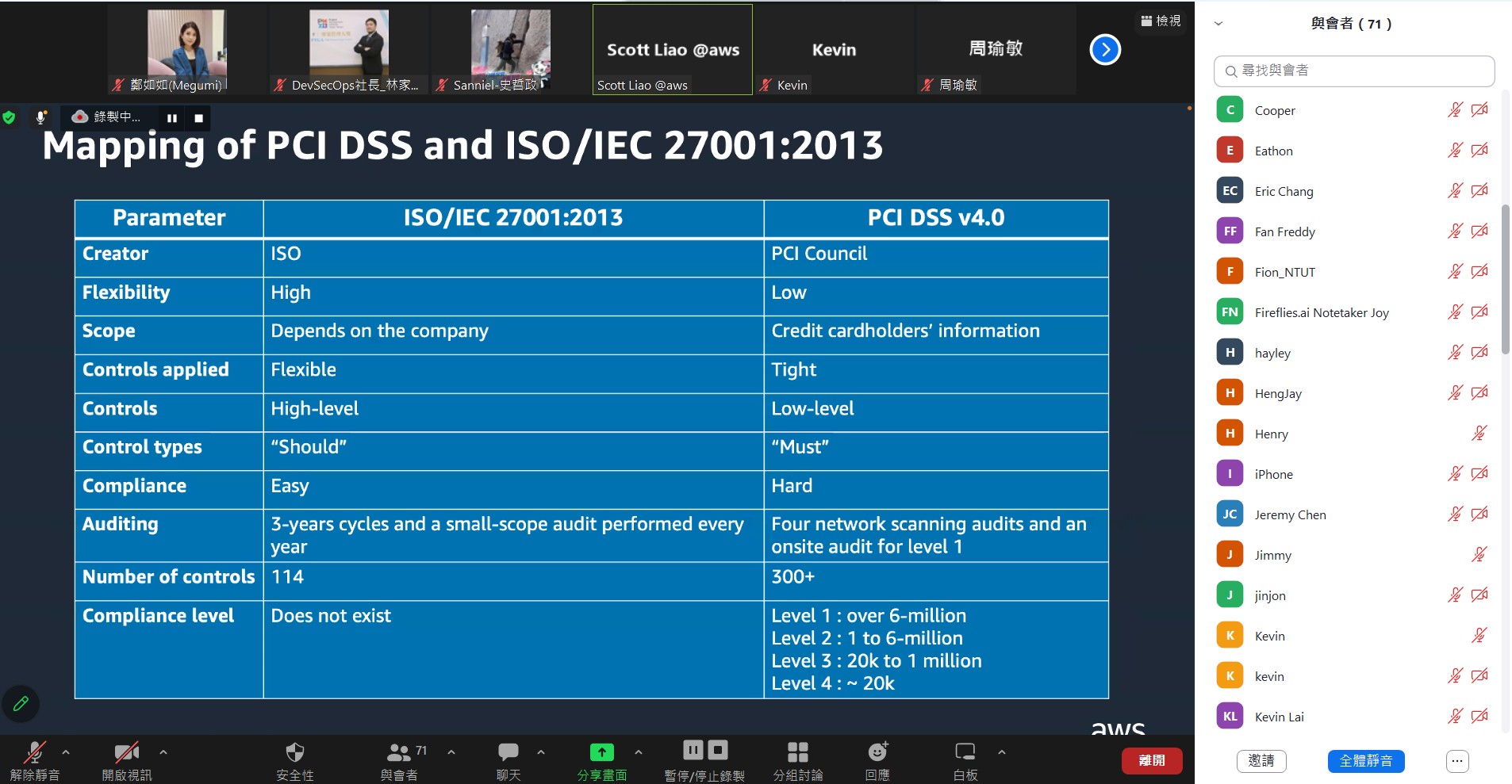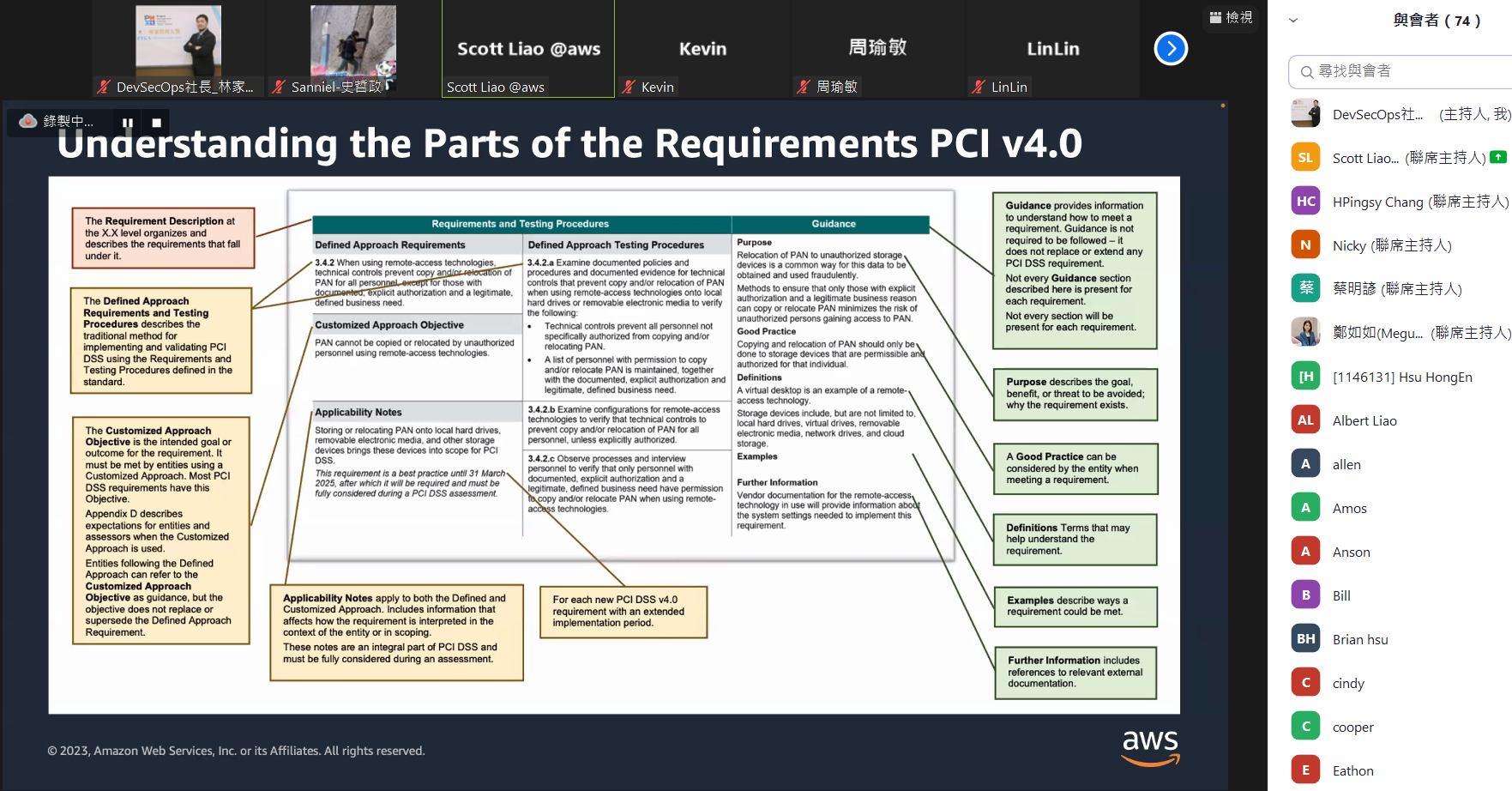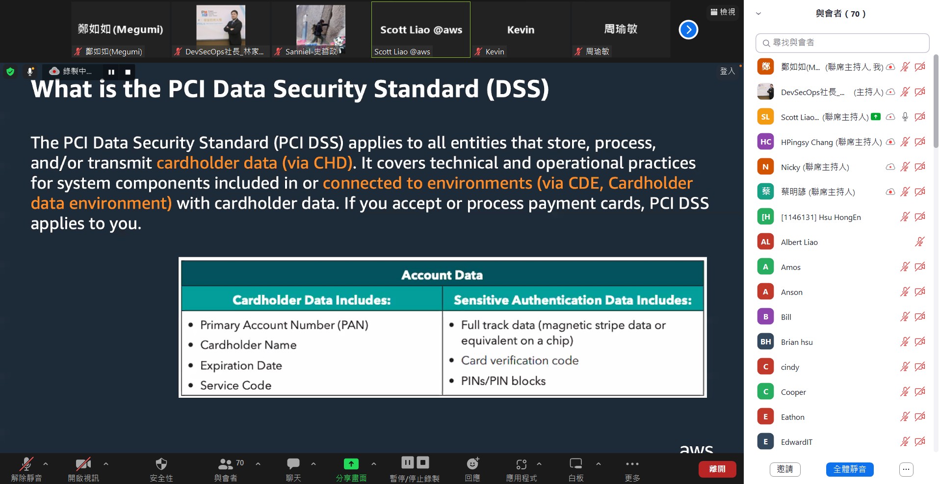 從 1 座機房踏入雲時代的 PCI-DSS 合規歷程 Scott Liao / 2023年10月05日作者: DevSecOps Taiwan / 2023 年 10 月 5 日 隨著數據安全的重要性日益提升,PCI DSS的導入已成為企業保護客戶資訊的關鍵步驟。但如何有效且順利地導入,卻是許多人面臨的困惑…1.單一環境的合規已經不再是困難。2.如何在現今跨雲時代也能輕鬆應對合規挑戰?3.實務導入 PCI-DSS 合規上的經驗以及從不同角色的思維。本次講座特色 真實案例分享:探討實際導入PCI DSS的經驗,從中學習可能的挑戰與解決策略。深度解析:AWS原廠資安SA帶您深入了解PCI DSS的核心原則,並分享如何達成這些標準的策略。Q&A環節:您的所有資安疑問,都將得到專家的詳盡回答。