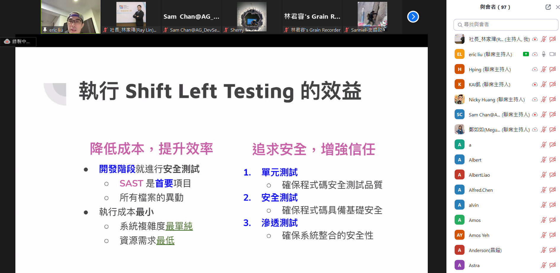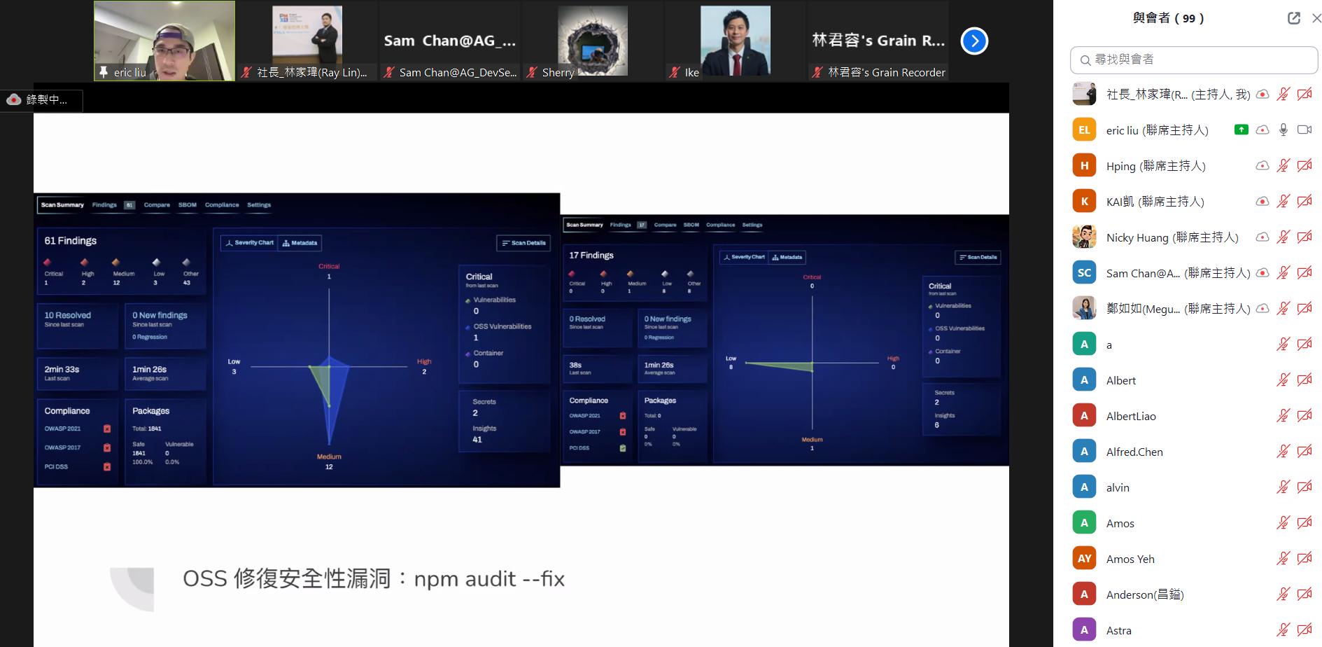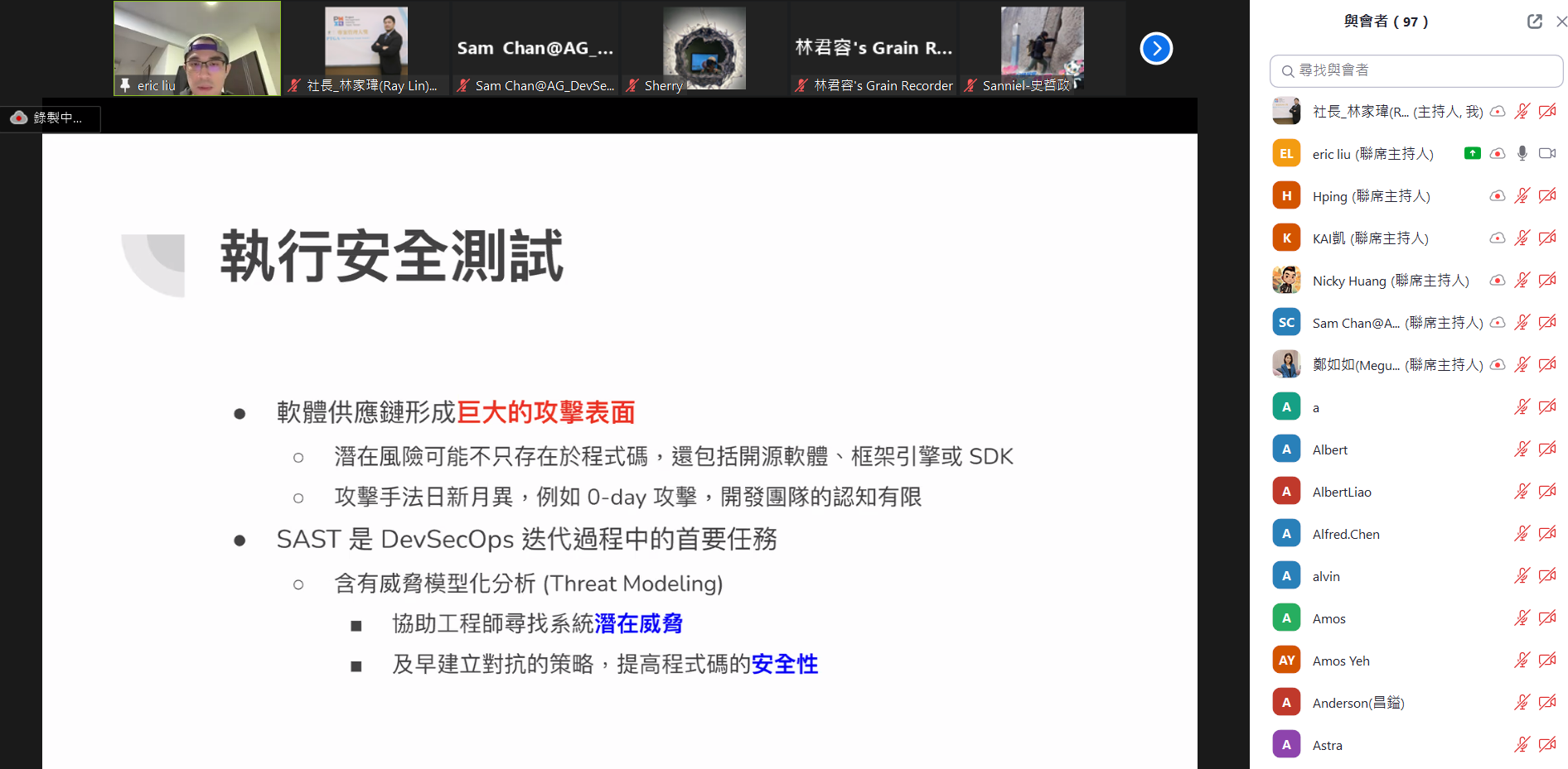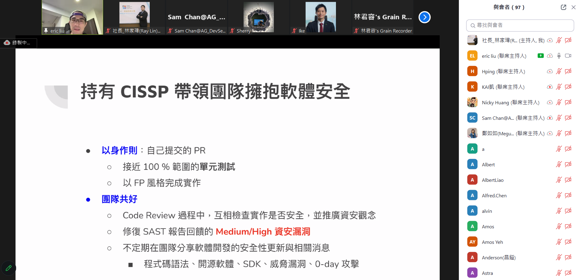 DevSecOps 與 Secure coding劉仁嘉 / 2024年03月13日作者: DevSecOps Taiwan / 2024 年 3 月 13 日 一場關於夢想、代碼和安全之間的旅程即將開啟Eric Liu他不僅是一位技術的魔法師,更是一位夢想家。在軟體的世界裡,Eric用他十年的熱血和汗水編織了一幅幅精彩的畫卷。作為一位前線領導者,他的旅程充滿了挑戰與成就,而CISSP認證和Aeternus ArtTech的創辦,則是他對這個世界說「我在這裡」的方式。我們將共同探討:資安漏洞的根源:揭露不安全軟體如何成為風險的開始。資安之道,軟體先行:從軟體安全的角度實現產品保護。領導之術,安全之道:如何引導團隊領略軟體安全的重要性