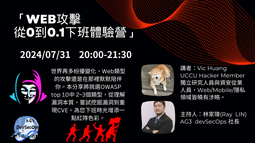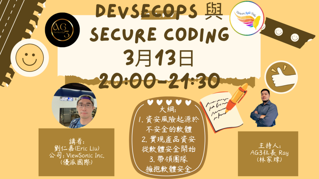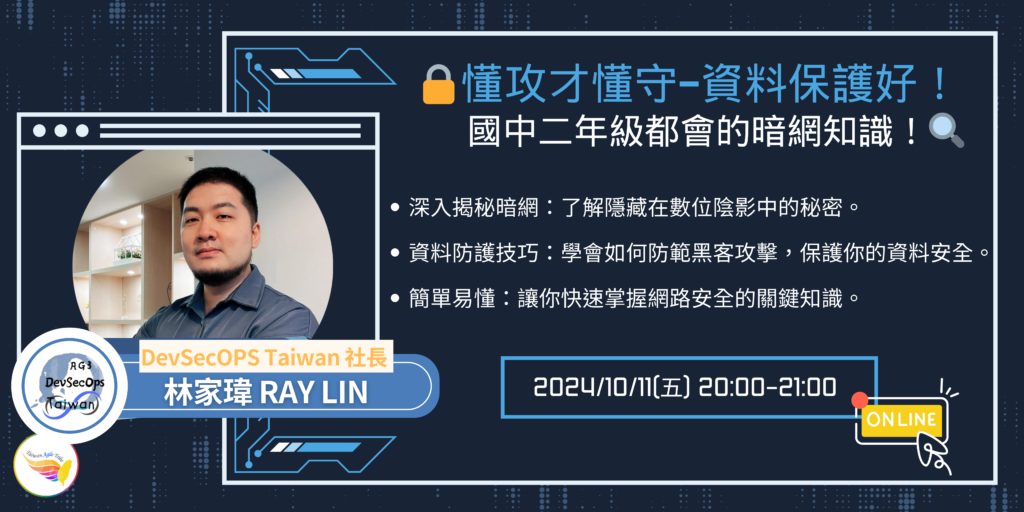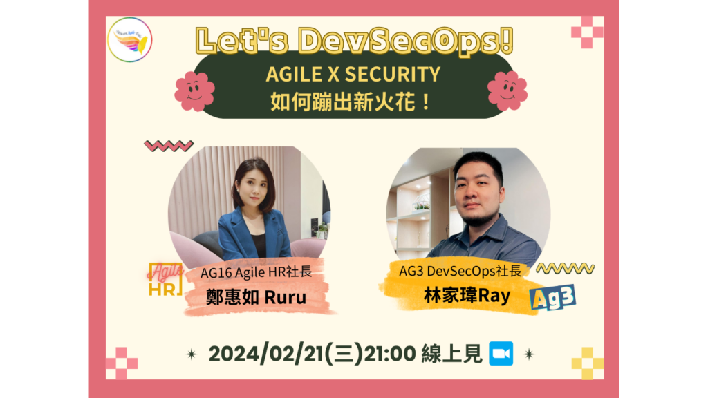 Let’s DevSecOps!Agile x Security如何蹦出新火花! 林家瑋(Ray Lin) ft. 鄭惠如(RuRu Cheng) / 20240221 2024年, 活動記錄 / DevSecOps Taiwan Let’s DevSecOp