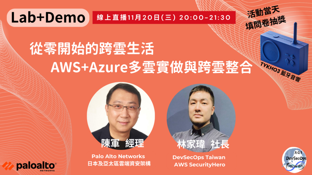 從零開始的跨雲生活 – AWS+Azure多雲實作與跨雲整合 林家瑋(Ray Lin) & 陳軍(CJ) / 2024年11月20日 2024年, 活動記錄, 跨雲整合系列 / DevSecOps Taiwan 跨雲整合好難呀,這些問題怎麼解決? 1.